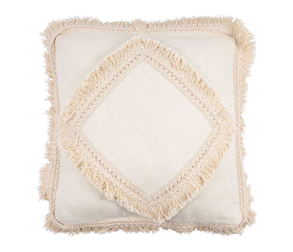 • Tyynynpäällinen hapsukuviolla 45x45cm, valkoinen